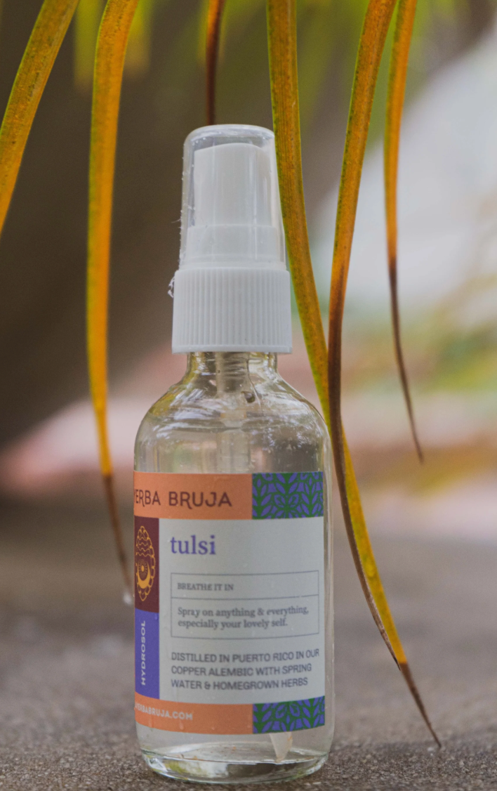 Steam-distilled fresh in Puerto Rico. Use as a body spray or room spray for uplifting and heart opening effects.ingredients: steam distilled fresh tulsi, water. 2oz