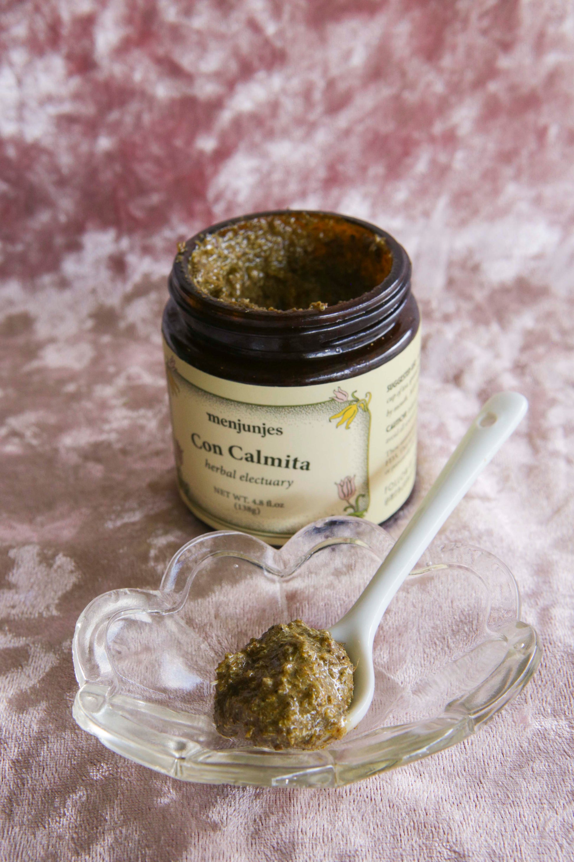Our Con Calmita Herbal Electuary will help you wine down after a long day of work or set the mood for a relax, slow morning. NET WT. 4.8 fl. oz (138g)