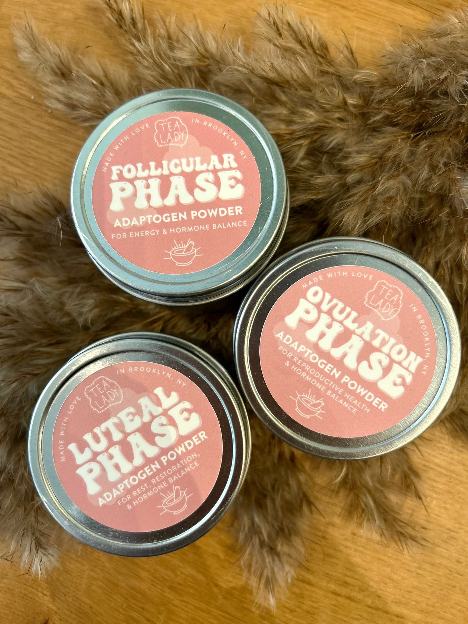 Four herbal powders: one for each phase of your cycle. Carefully curated with a blend of roots, flowers, leaves and berries to soothe inflammation, boost mood, and stabilize & support energy levels through each phases' unique needs.